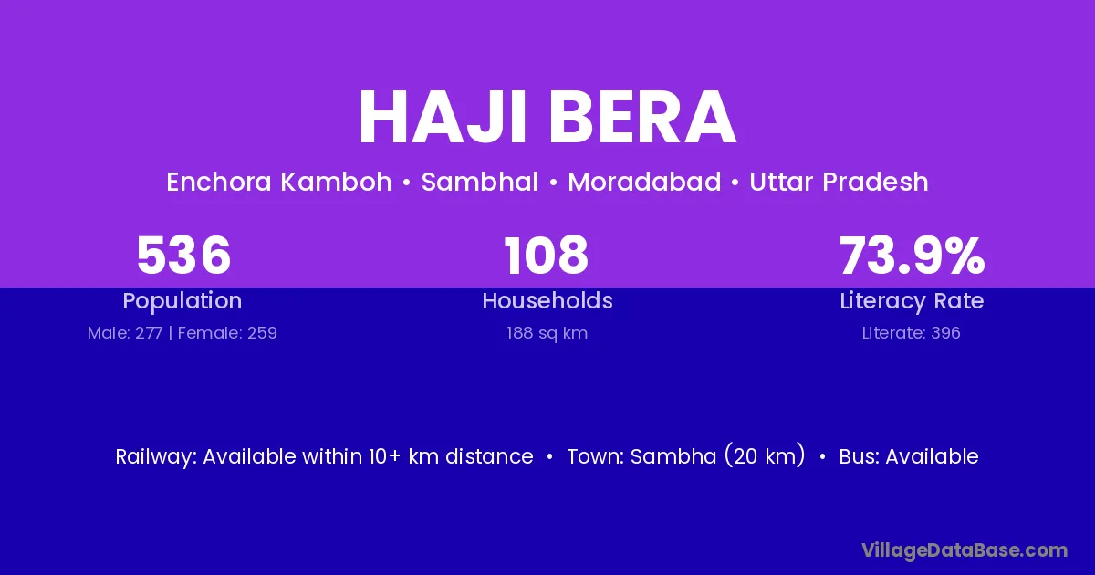 Sambha (20 km) is the nearest town to Haji Bera village for major economic activities and is located approximately 20 km away.