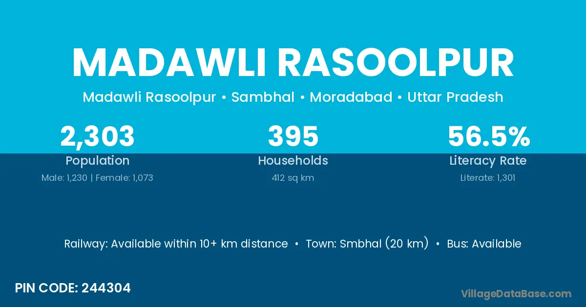 According to Census 2011 information, the village code of Madawli Rasoolpur village is 244304.