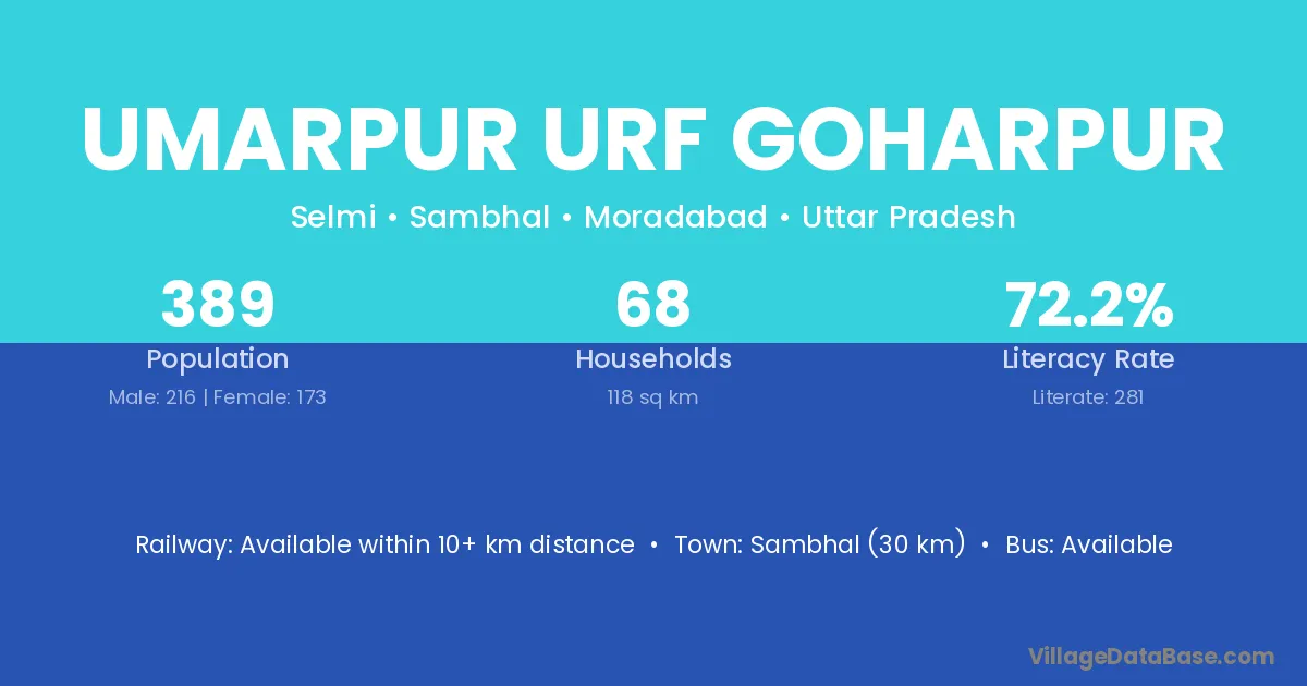 Umarpur Urf Goharpur village has a total population of 389 people, of which 216 are males and 173 are females.