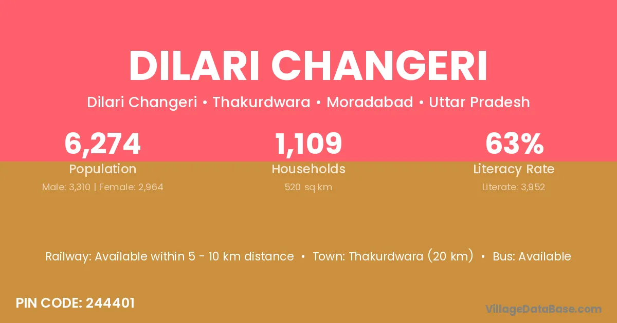 Thakurdwara (20 km) is the nearest town to Dilari Changeri village for major economic activities and is located approximately 20 km away.