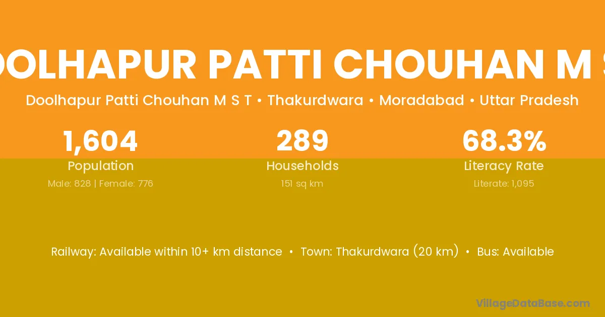 Thakurdwara (20 km) is the nearest town to Doolhapur Patti Chouhan M S T village for major economic activities and is located approximately 20 km away.