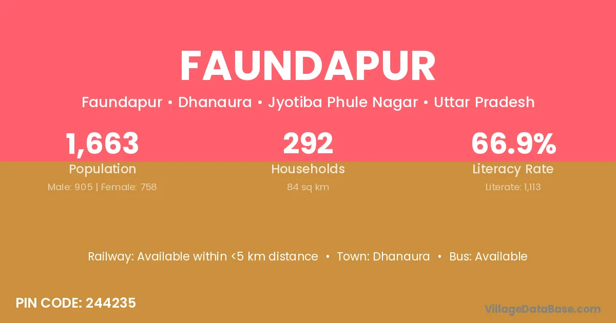 Thakurdwara (18 km) is the nearest town to Faundapur village for major economic activities and is located approximately 18 km away.