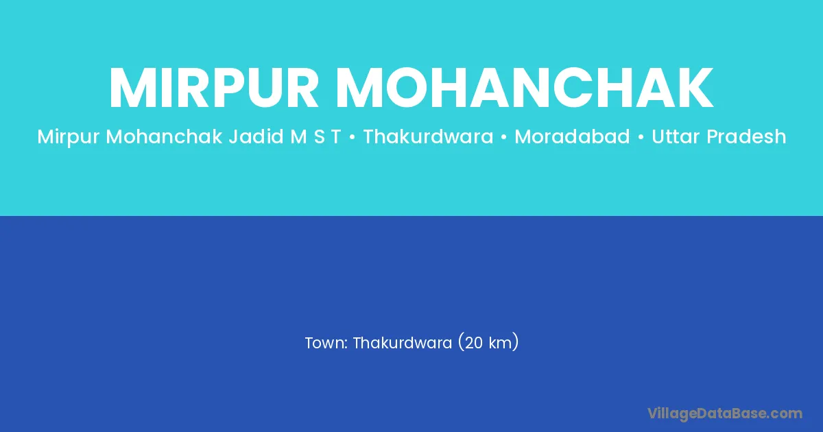 Thakurdwara (20 km) is the nearest town to Mirpur Mohanchak village for major economic activities and is located approximately 20 km away.