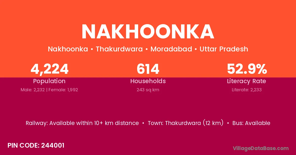 Thakurdwara (12 km) is the nearest town to Nakhoonka village for major economic activities and is located approximately 12 km away.