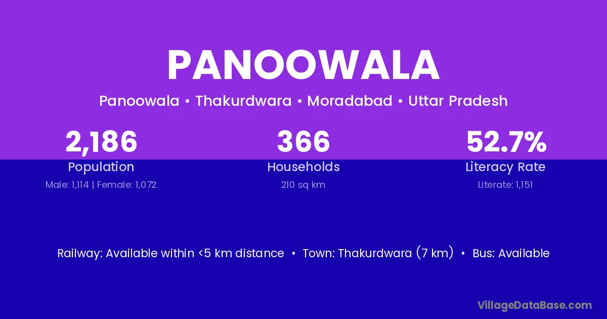 Thakurdwara (7 km) is the nearest town to Panoowala village for major economic activities and is located approximately 7 km away.