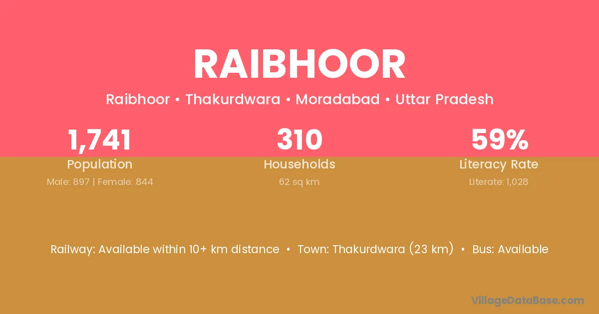 Thakurdwara (23 km) is the nearest town to Raibhoor village for major economic activities and is located approximately 23 km away.