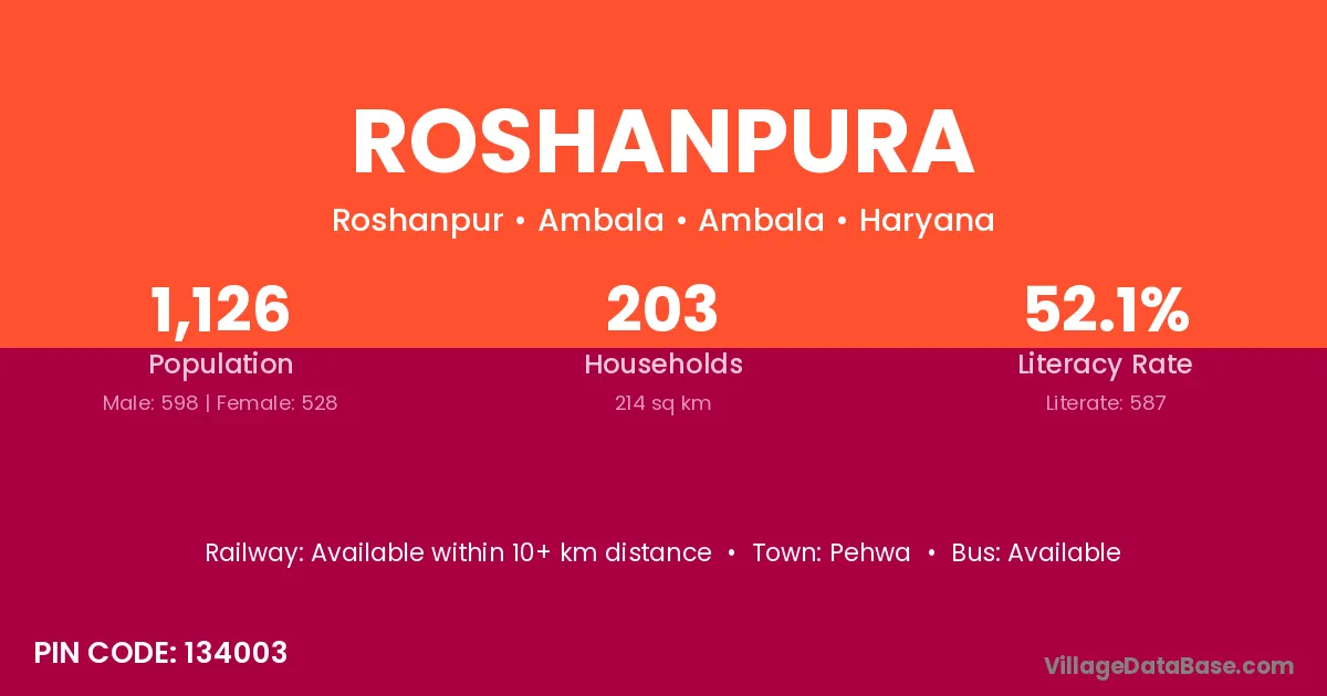 Thakurdwara (20 km) is the nearest town to Roshanpura village for major economic activities and is located approximately 20 km away.