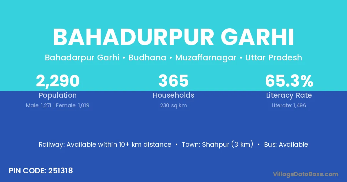 Shahpur (3 km) is the nearest town to Bahadurpur Garhi village for major economic activities and is located approximately 3 km away.