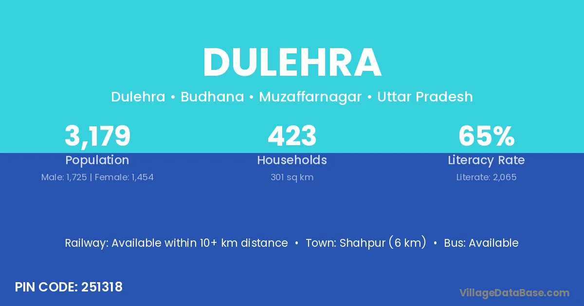 Shahpur (6 km) is the nearest town to Dulehra village for major economic activities and is located approximately 6 km away.