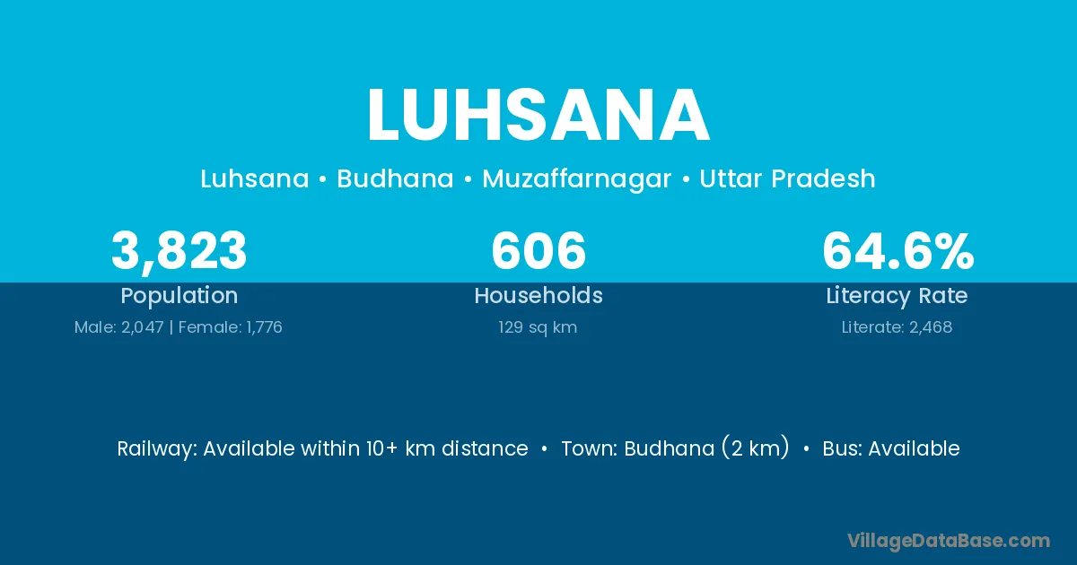 Budhana (2 km) is the nearest town to Luhsana village for major economic activities and is located approximately 2 km away.
