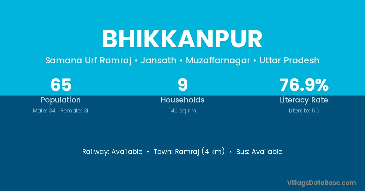 Ramraj (4 km) is the nearest town to Bhikkanpur village for major economic activities and is located approximately 4 km away.