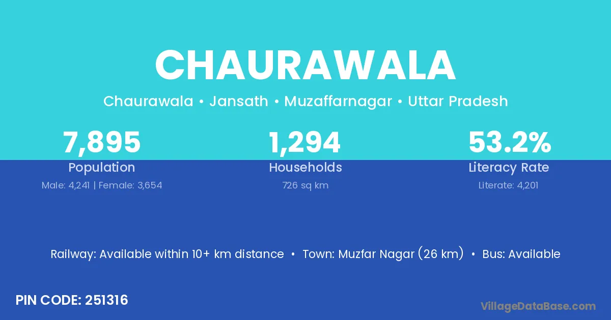 Muzfar Nagar (26 km) is the nearest town to Chaurawala village for major economic activities and is located approximately 26 km away.