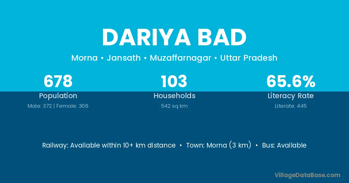Morna (3 km) is the nearest town to Dariya Bad village for major economic activities and is located approximately 3 km away.
