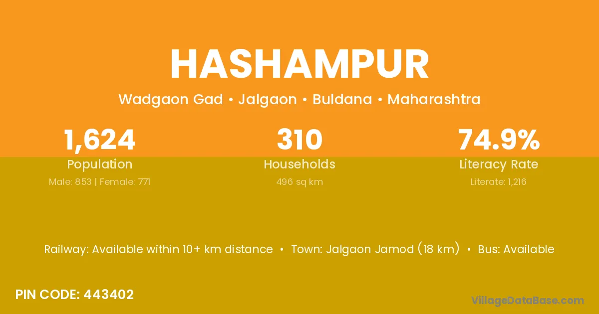 Hashampur village has a total population of 6,608 people, of which 3,428 are males and 3,180 are females.