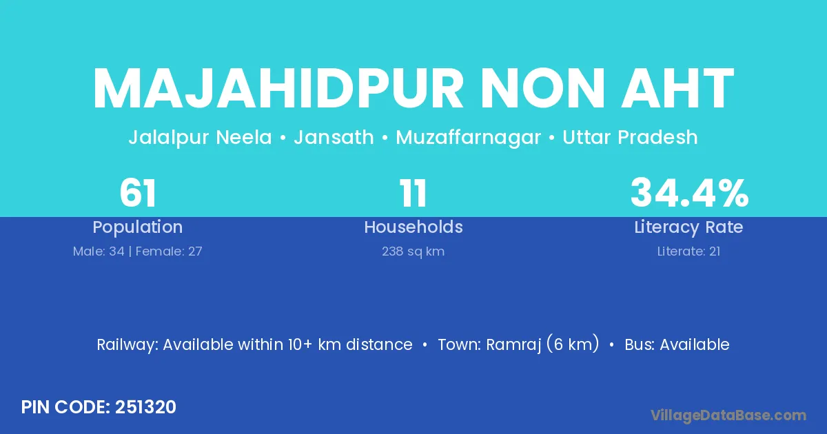 Ramraj (6 km) is the nearest town to Majahidpur Non Aht village for major economic activities and is located approximately 6 km away.