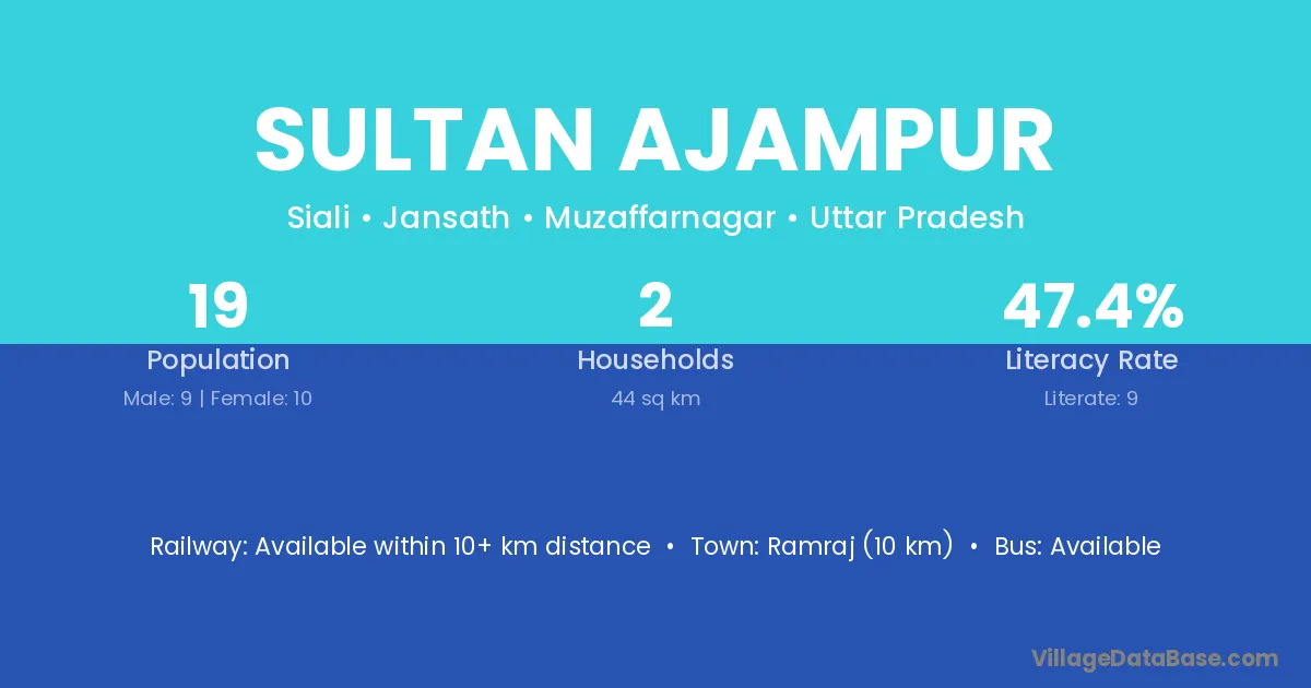 Sultan Ajampur village has a total population of 19 people, of which 9 are males and 10 are females.