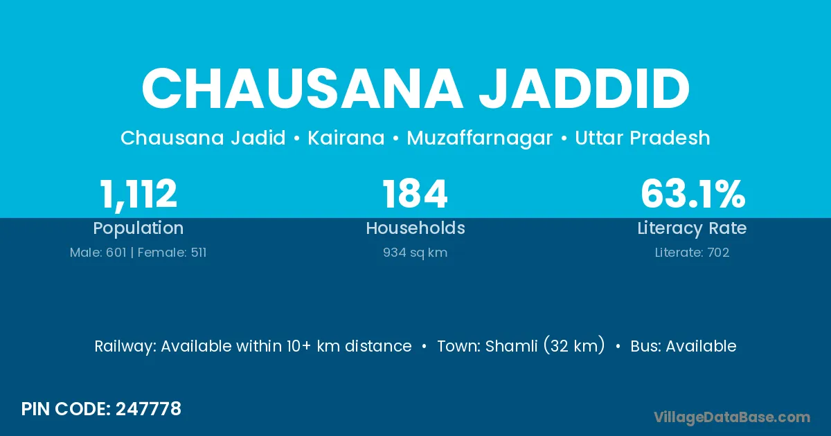 Shamli (32 km) is the nearest town to Chausana Jaddid village for major economic activities and is located approximately 32 km away.