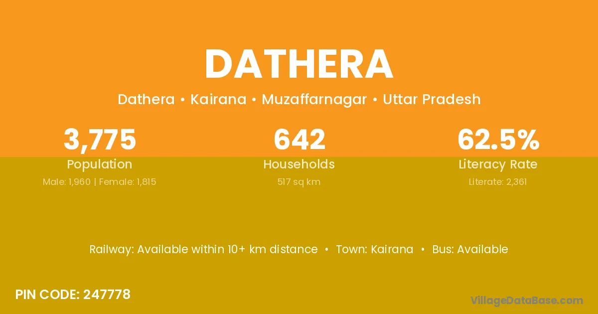 Kairana is the nearest town to Dathera village for major economic activities