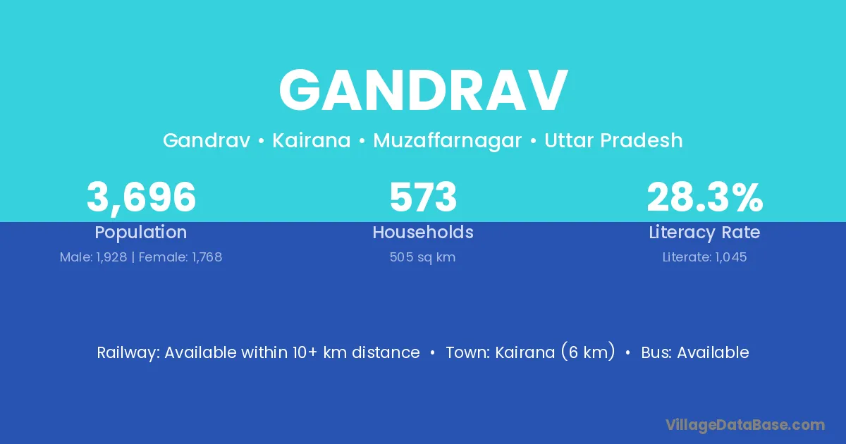Kairana (6 km) is the nearest town to Gandrav village for major economic activities and is located approximately 6 km away.