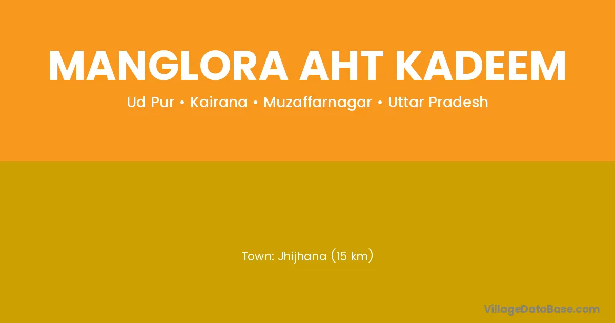 Jhijhana (15 km) is the nearest town to Manglora Aht Kadeem village for major economic activities and is located approximately 15 km away.