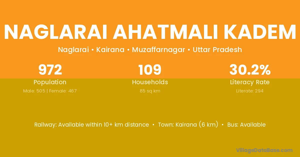 Kairana (6 km) is the nearest town to Naglarai Ahatmali Kadem village for major economic activities and is located approximately 6 km away.