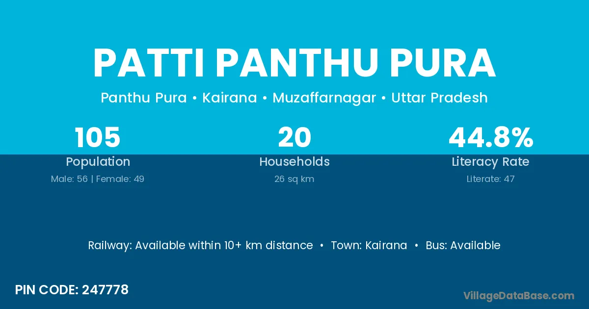Kairana is the nearest town to Patti Panthu Pura village for major economic activities