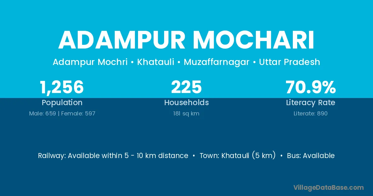 Khatauli (5 km) is the nearest town to Adampur Mochari village for major economic activities and is located approximately 5 km away.