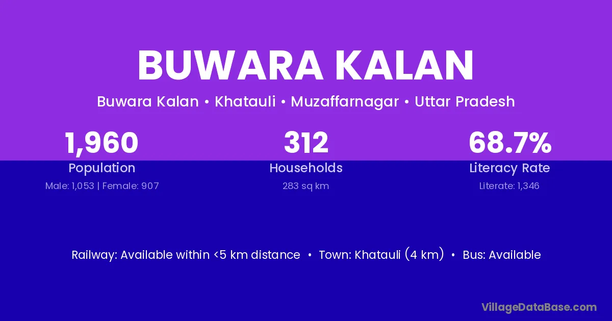 Khatauli (4 km) is the nearest town to Buwara Kalan village for major economic activities and is located approximately 4 km away.