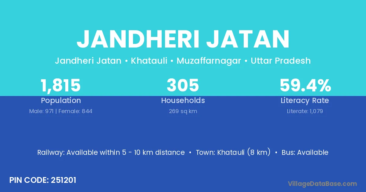 Khatauli (8 km) is the nearest town to Jandheri Jatan village for major economic activities and is located approximately 8 km away.