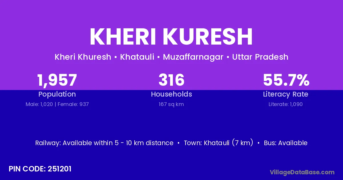 Khatauli (7 km) is the nearest town to Kheri Kuresh village for major economic activities and is located approximately 7 km away.