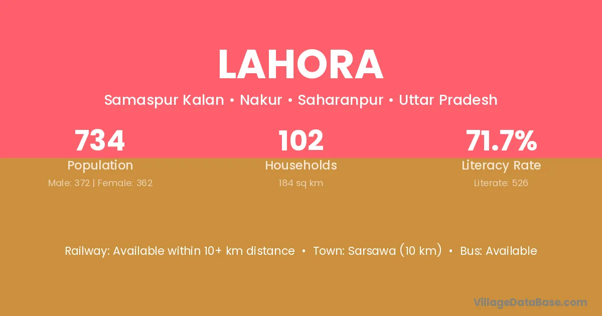 Khatauli is the nearest town to Lahora village for major economic activities