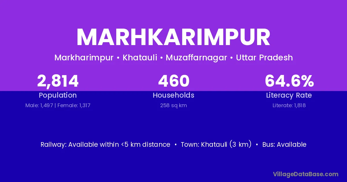 Khatauli (3 km) is the nearest town to Marhkarimpur village for major economic activities and is located approximately 3 km away.