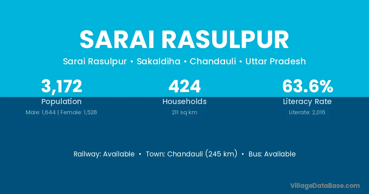 Khatauli (8 km) is the nearest town to Sarai Rasulpur village for major economic activities and is located approximately 8 km away.