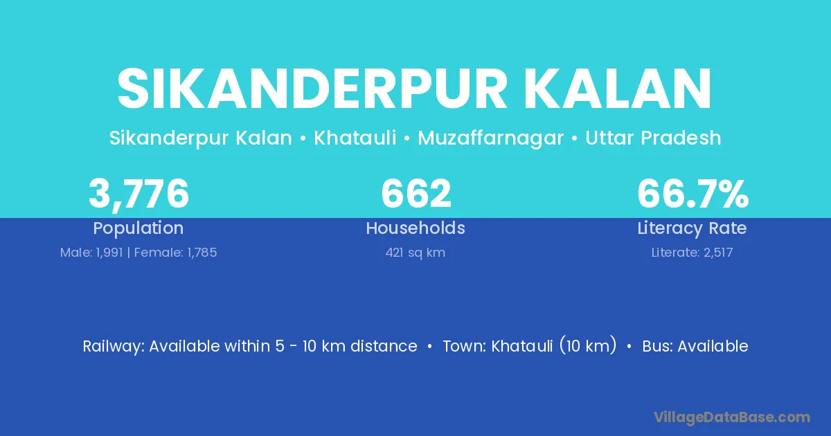 Khatauli (10 km) is the nearest town to Sikanderpur Kalan village for major economic activities and is located approximately 10 km away.