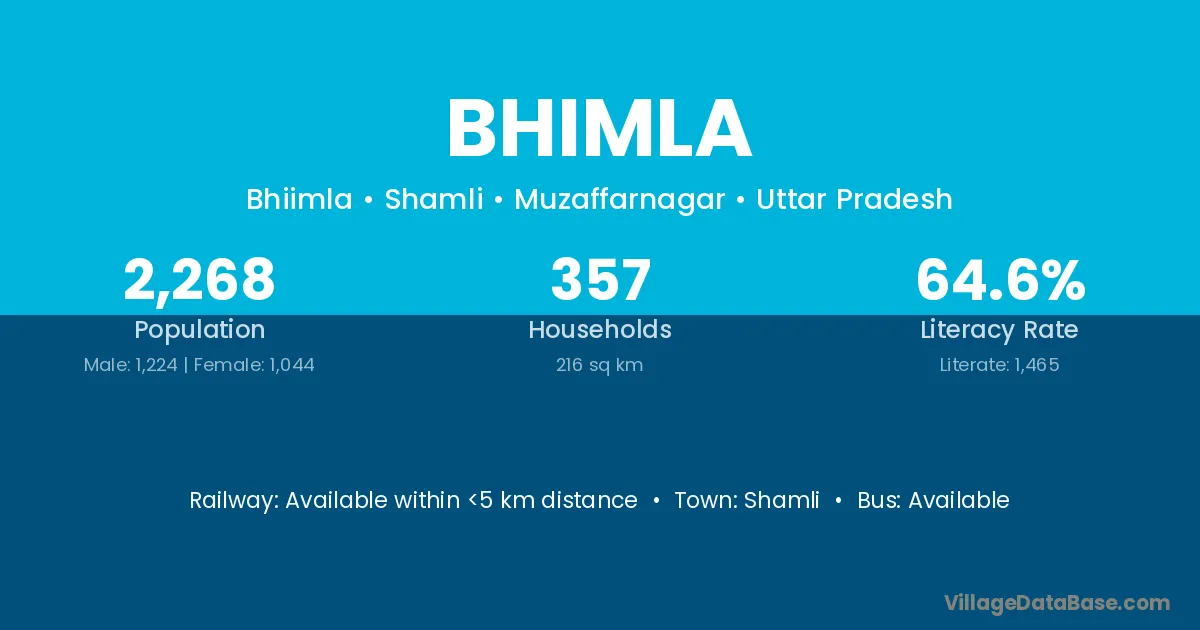 Shamli is the nearest town to Bhimla village for major economic activities