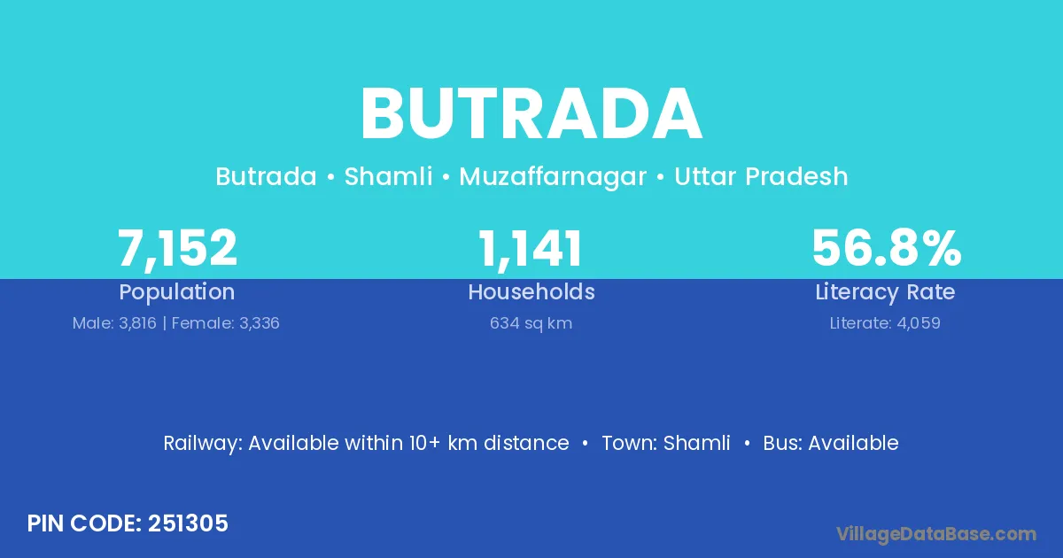 Shamli is the nearest town to Butrada village for major economic activities