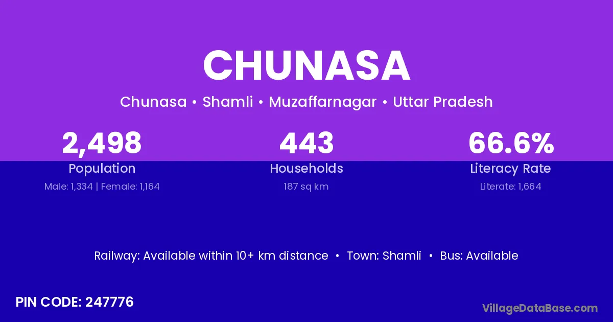 Shamli is the nearest town to Chunasa village for major economic activities
