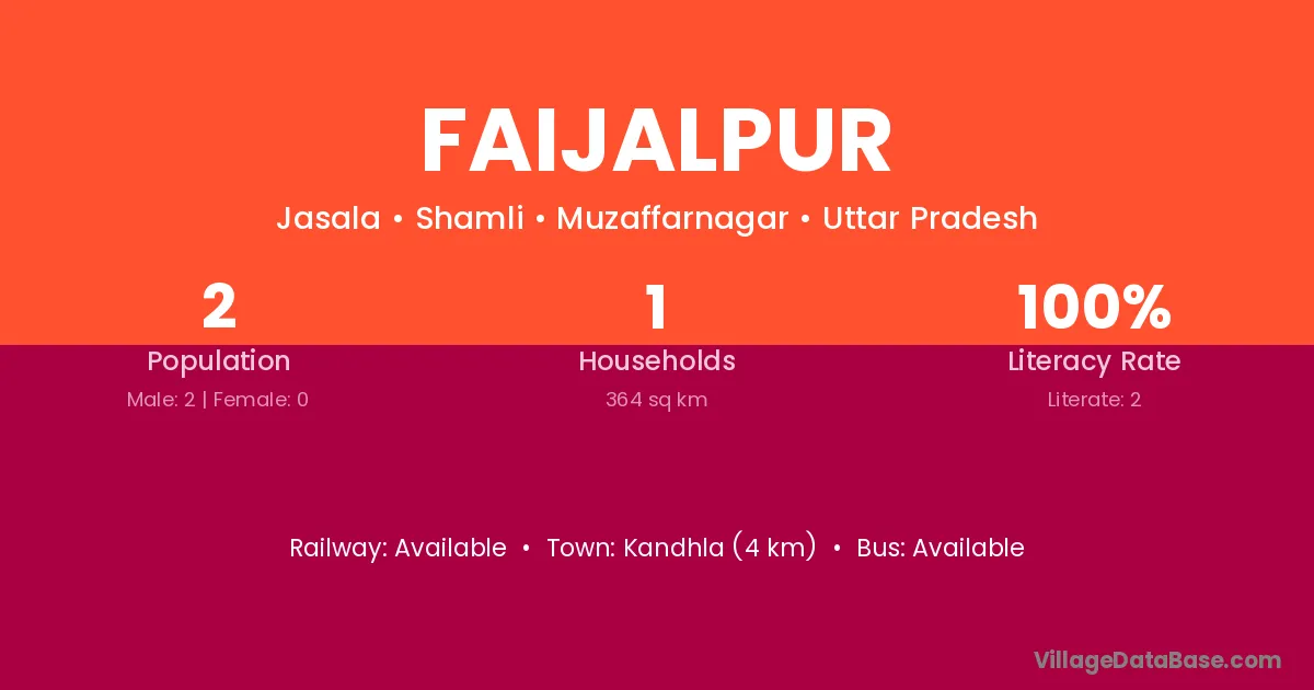 Kandhla (4 km) is the nearest town to Faijalpur village for major economic activities and is located approximately 4 km away.