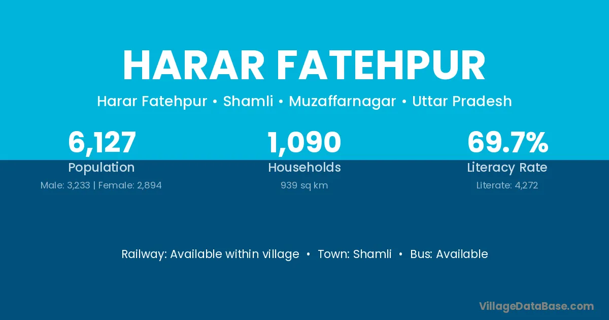 Shamli is the nearest town to Harar Fatehpur village for major economic activities