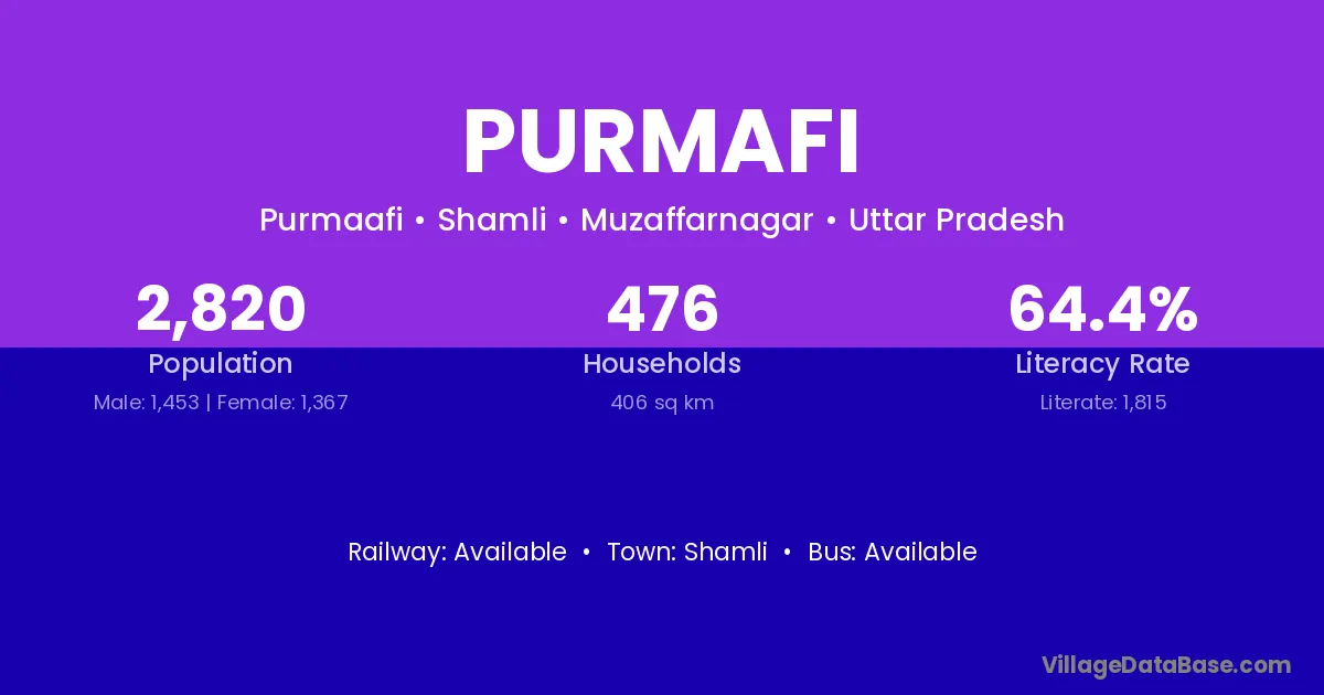 Shamli is the nearest town to Purmafi village for major economic activities