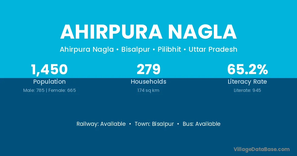 Ahirpura Nagla village has a total population of 1,450 people, of which 785 are males and 665 are females.