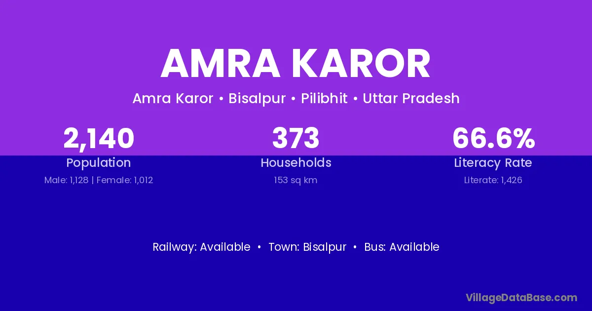 Amra Karor village has a total population of 2,140 people, of which 1,128 are males and 1,012 are females.