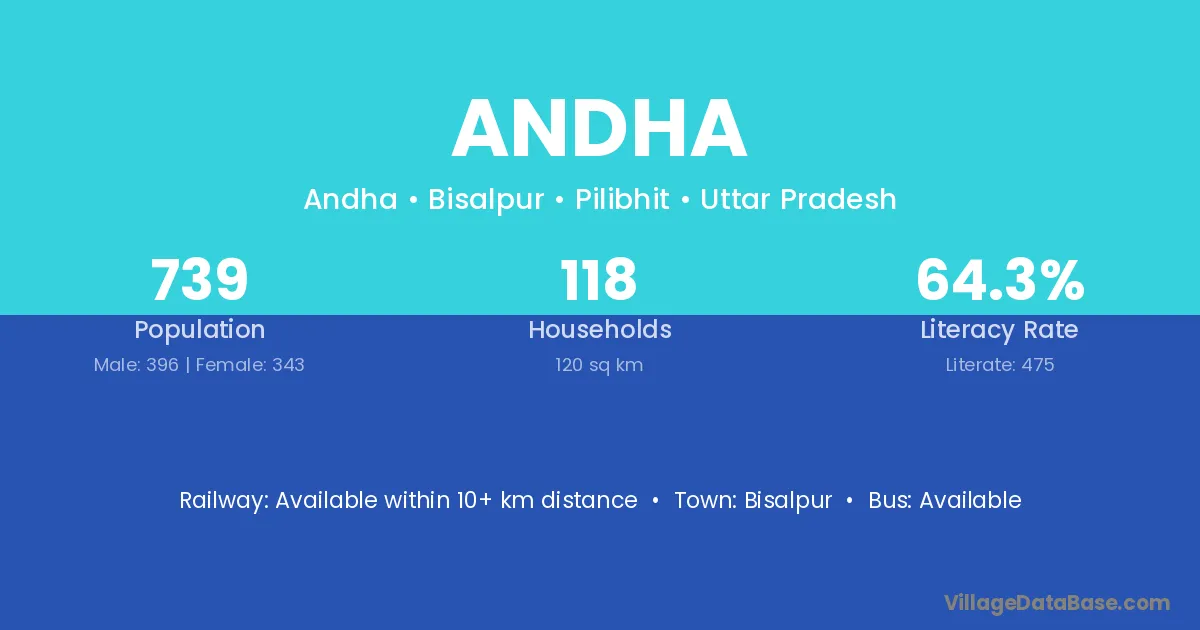 Andha village is located in the Bisalpur Tehsil of the Pilibhit district in Uttar Pradesh .
