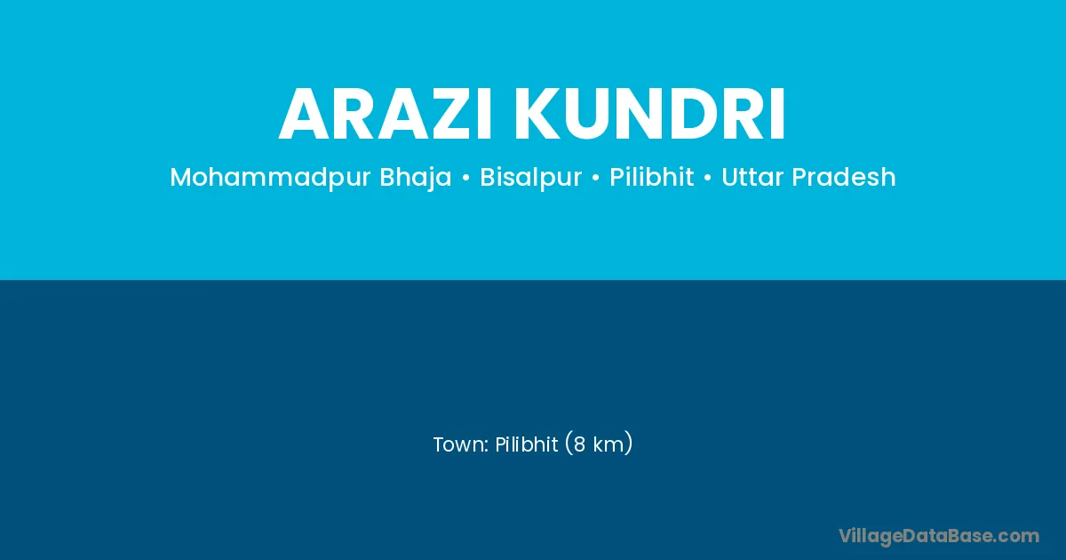 Pilibhit (8 km) is the nearest town to Arazi Kundri village for major economic activities and is located approximately 8 km away.