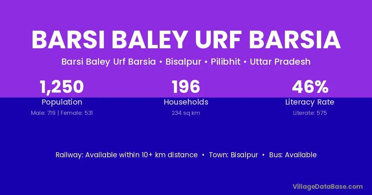 Barsi Baley Urf Barsia village has a total population of 1,250 people, of which 719 are males and 531 are females.