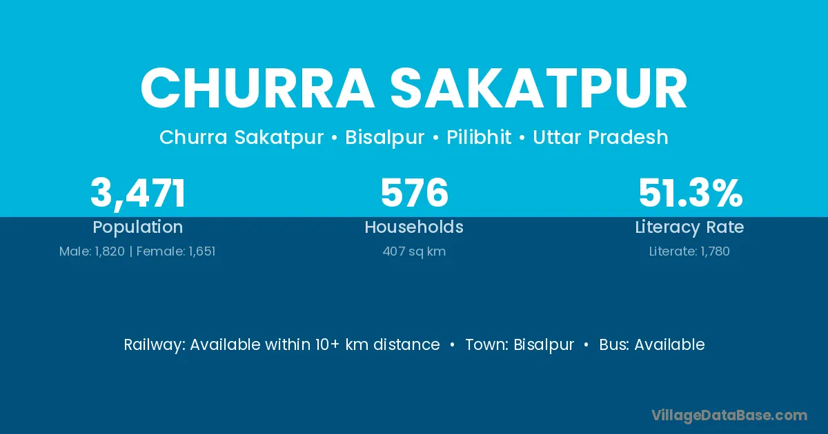 Churra Sakatpur village has a total population of 3,471 people, of which 1,820 are males and 1,651 are females.
