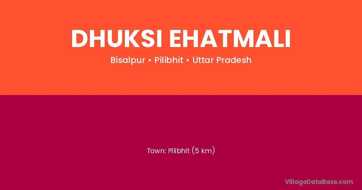 Pilibhit (5 km) is the nearest town to Dhuksi Ehatmali village for major economic activities and is located approximately 5 km away.