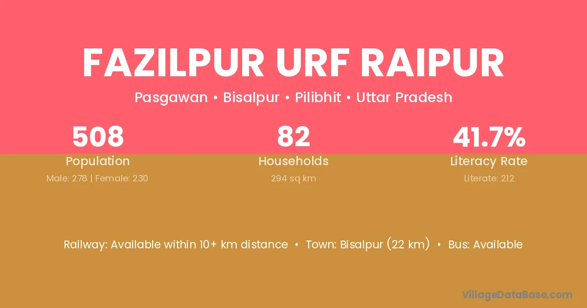Fazilpur Urf Raipur village has a total population of 508 people, of which 278 are males and 230 are females.