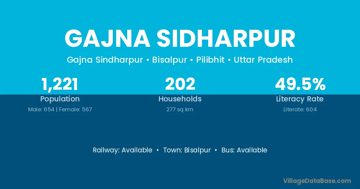 Gajna Sidharpur village has a total population of 1,221 people, of which 654 are males and 567 are females.