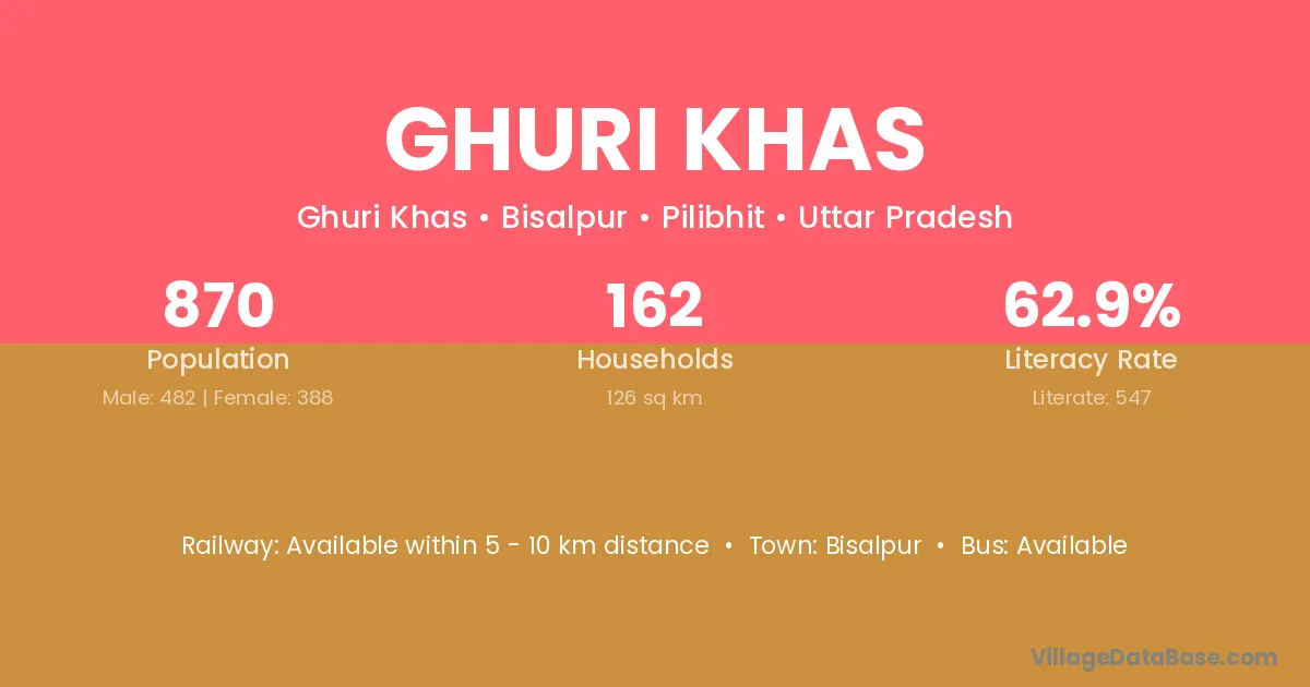 Ghuri Khas village has a total population of 870 people, of which 482 are males and 388 are females.